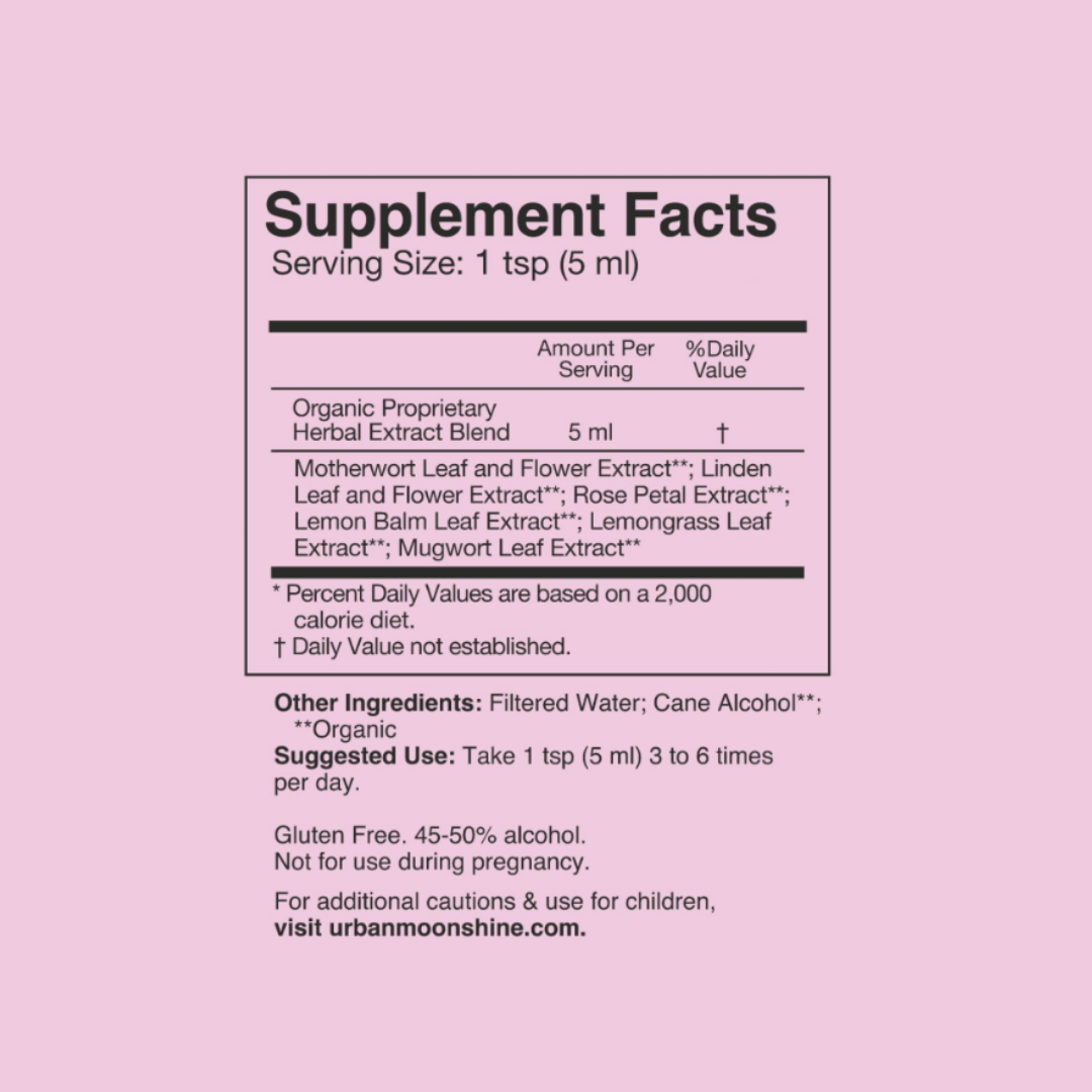 Organic Proprietary Herbal Extract Blend: Organic Motherwort Leaf and Flower; Org. Linden Leaf and Flower; Org. Rose Petal; Org. Lemon Balm Leaf; Org. Lemongrass Leaf; Org. Mugwort Leaf.